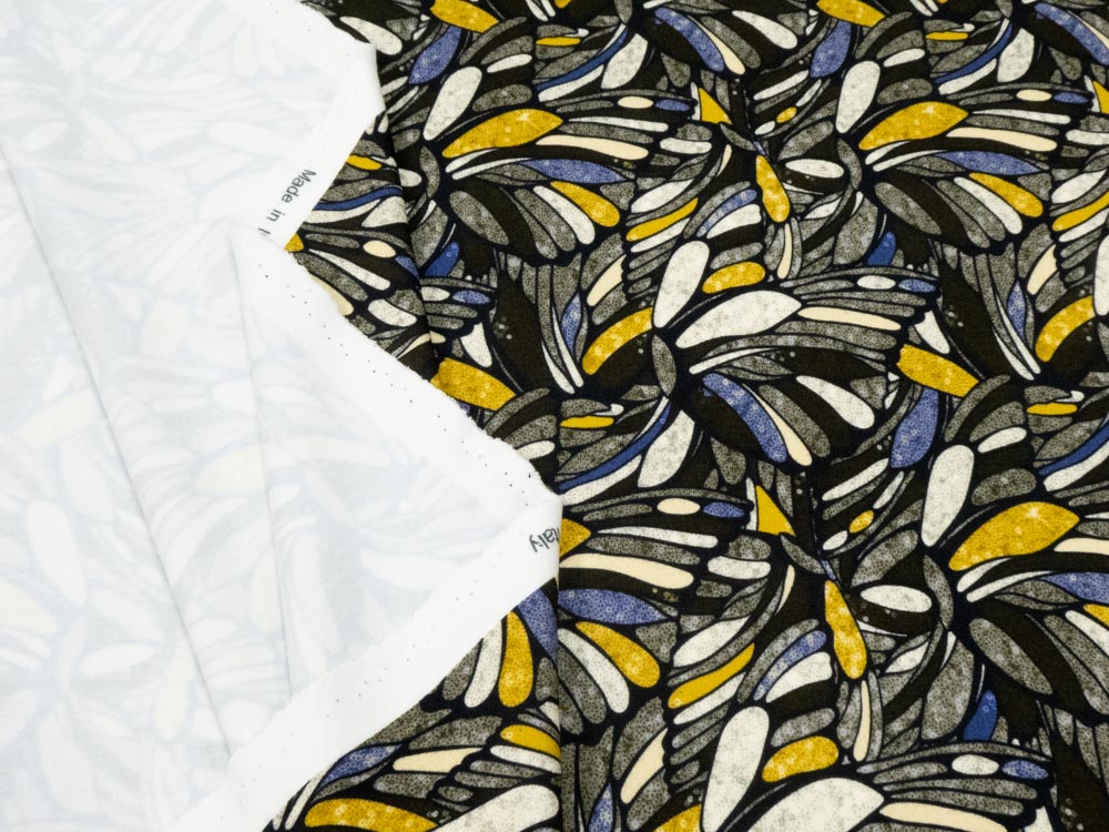 Fester, schwerer (565gr/m2), leicht elastischer, hochwertiger Romanitjersey aus Viskose und wenig Elasthan (kein Polyester, was sonst immer üblich ist bei Romanit), made in Italy, ideal für Winteroberteile und Kleider.