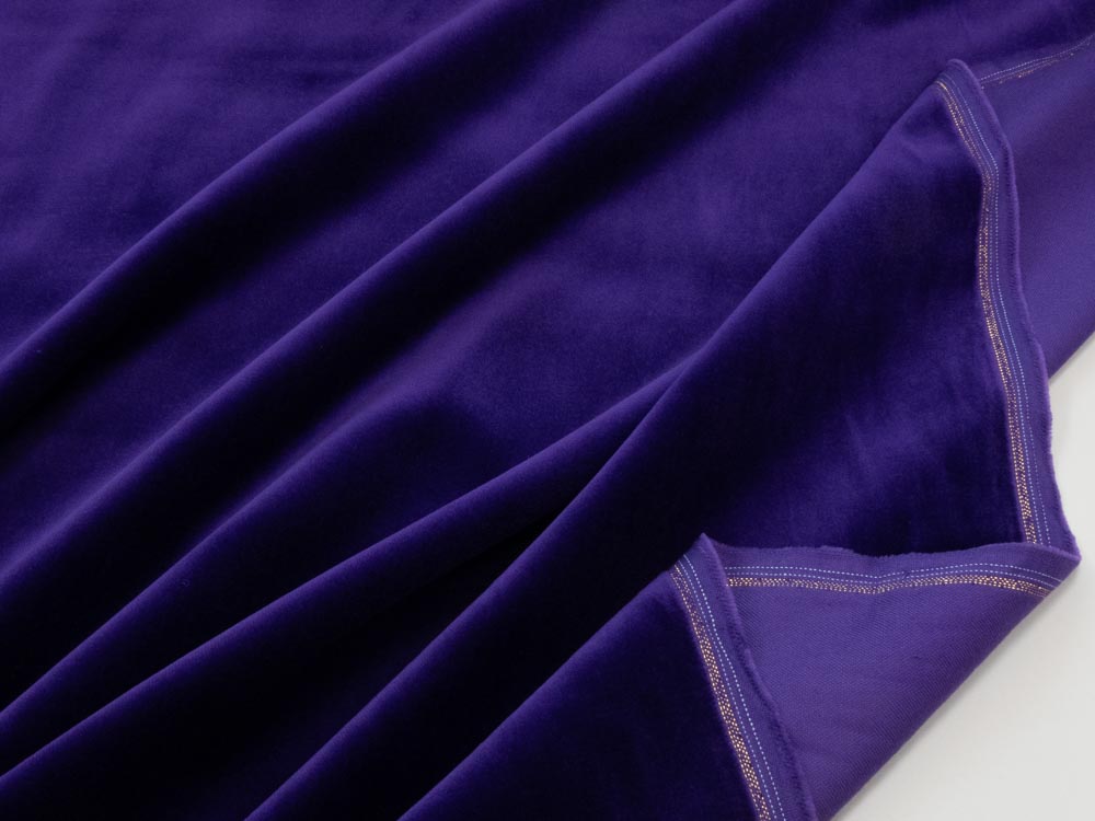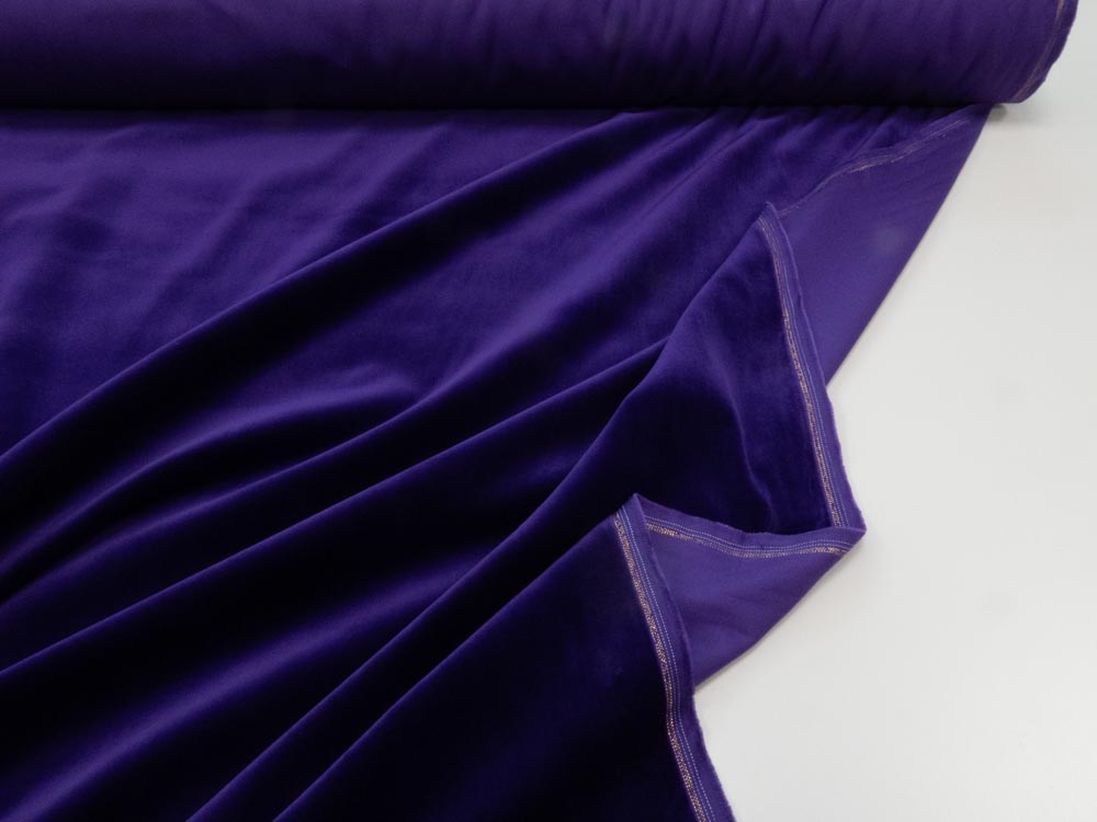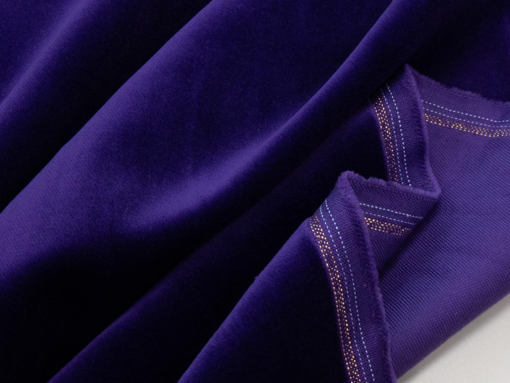 Weicher, mittelschwerer (256 gr/m2) Baumwollsamt mit schönem Glanz und dem typischem goldenen Webrand