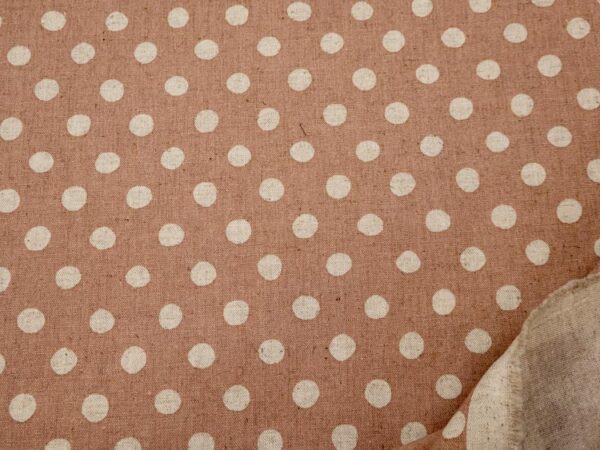 Dicker und fester, altrosafarbener Canvas aus Japan mit 13mm grossen, naturfarbenen Punkten