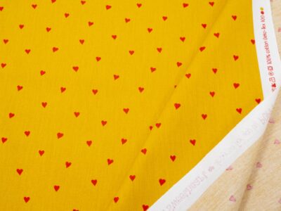 Robustes (257gr/m2) safrangelbes Baumwoll- und Flachsgewebe mit 4cm grossen, naturfarbenen Sternen