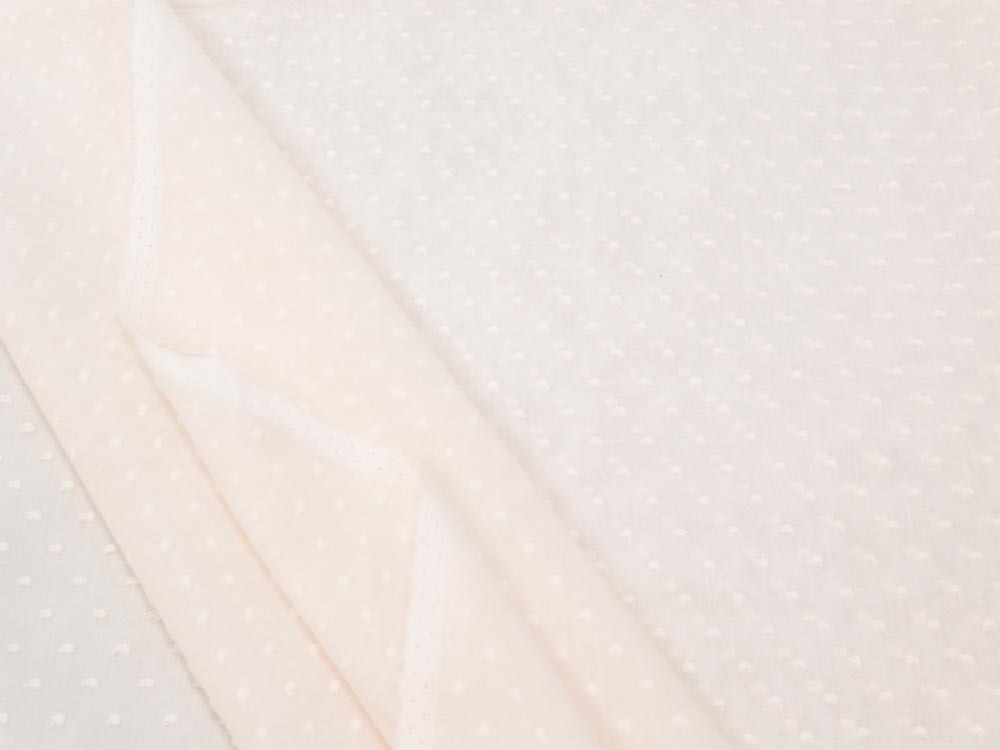 Ein sehr leichter (95gr/m2), luftig weicher Baumwollscherli, der durch seine zarte Erscheinung überzeugt. Der edle Voile wir durch die kleinen gewobenen Punkte zu einem Klassiker! Made in Switzerland