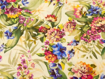 Dünner und weich fallender Viskosekrepp mit dem für Krepp typischen, leicht sandigen Griff. Die fliessenden, abstrakten Formen verbinden sich mit grafischen Elementen und erinnern an einen modernen Retrostil, was diesem besonderen Stoff eine ausdrucksstarke Optik verleiht.