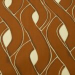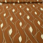 Dünner, weich fallender Viskosekrepp, bedruckt mit grossflächigem Zopfmuster in Zimtbraun. Der Stoff hat die typische, leicht körnige Oberfläche eines Viskosekrepps, was ihm einen dezenten Stand verleiht. Ideal für Hosen oder Winterblusen.