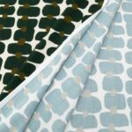 Dünnes, weich fallendes Viskosegewebe in Tofuweiss, bedruckt mit ovalen Punkten, die miteinander verbunden wie eine Girlande wirken. Sehr schön geeignet für leichte Blusen,  die dezenten, winterlichen Farben verleihen dem Stoff eine elegante Note.