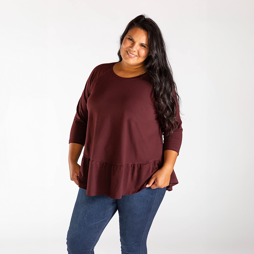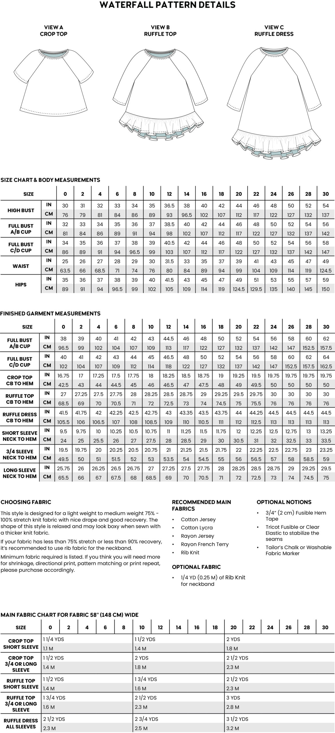 Das Waterfall Raglan ist ein luftiges Raglan-Top oder Kleid aus dehnbaren Stoffen. Der Schnitt zeichnet sich durch eine ausgestellte Silhouette aus, die über Taille und Hüfte locker fällt. Du hast die Wahl zwischen drei Varianten: