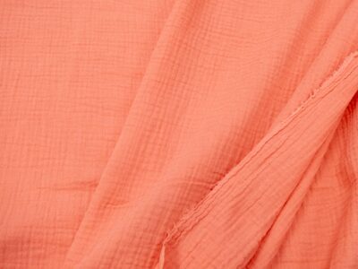 Feiner, leichter und vor allem superweicher Wolle- und Baumwollcrepe in einer leuchtend korallen Farbe. Ideal für einen warmen Schal oder ein leichtes Oberteil, das trotzdem angenehm warm hält.